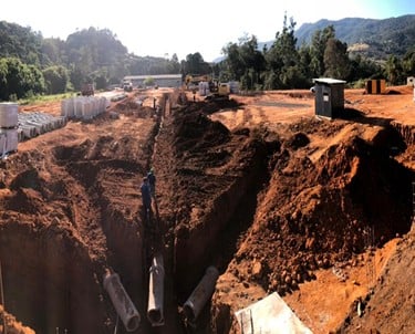 Sistema de infraestrutura, como drenagem de águas pluviais, esgotos, água, etc.